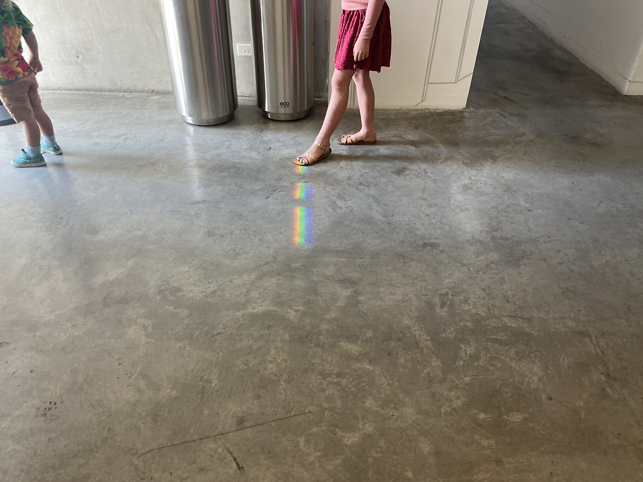 잠시 서서 방황을 하고 있는 우리 눈앞으로 작은 남자아이, 그보다 좀 큰 여자아이 그리고 아이들의 아빠가 나타났다. 창문을 통해 무지개가 들어왔다. 여자아이는 그걸 밟아보고 싶어 하고 남자아이는 무지개의 근원지를 쫓아 창문으로 달려간다. 도저히 무지개의 방향을 알아채지 못하니 아빠가 아이에게 무지개를 설명하는 걸 듣는다. 제 손이 닿아 바닥에 무지개가 사라지는 걸 확인하고서야 자리를 뜬다.