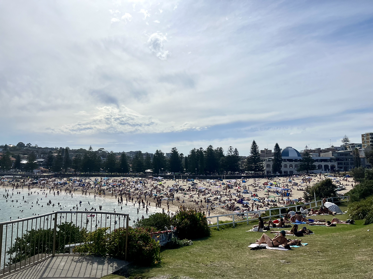 Coastal Walk의 종착지인 쿠지비치에 도착했다. 작은 해변은 작은 해변 나름의 고요함이 좋고, 큰 해변은 큰 이유가 있다 싶을 만큼 쉴 공간이 많다. 쿠지는 규모가 큰 해변인 만큼 사람도 많고 주변으로 공원도 크게 조성되어 있다. 본다이 해변에 갔을 때도 신기했던 점이었다. 바다 바로 옆으로 잔디밭이 많아서 굳이 모래사장이 아니더라도 누워있을 공간이 충분하다.