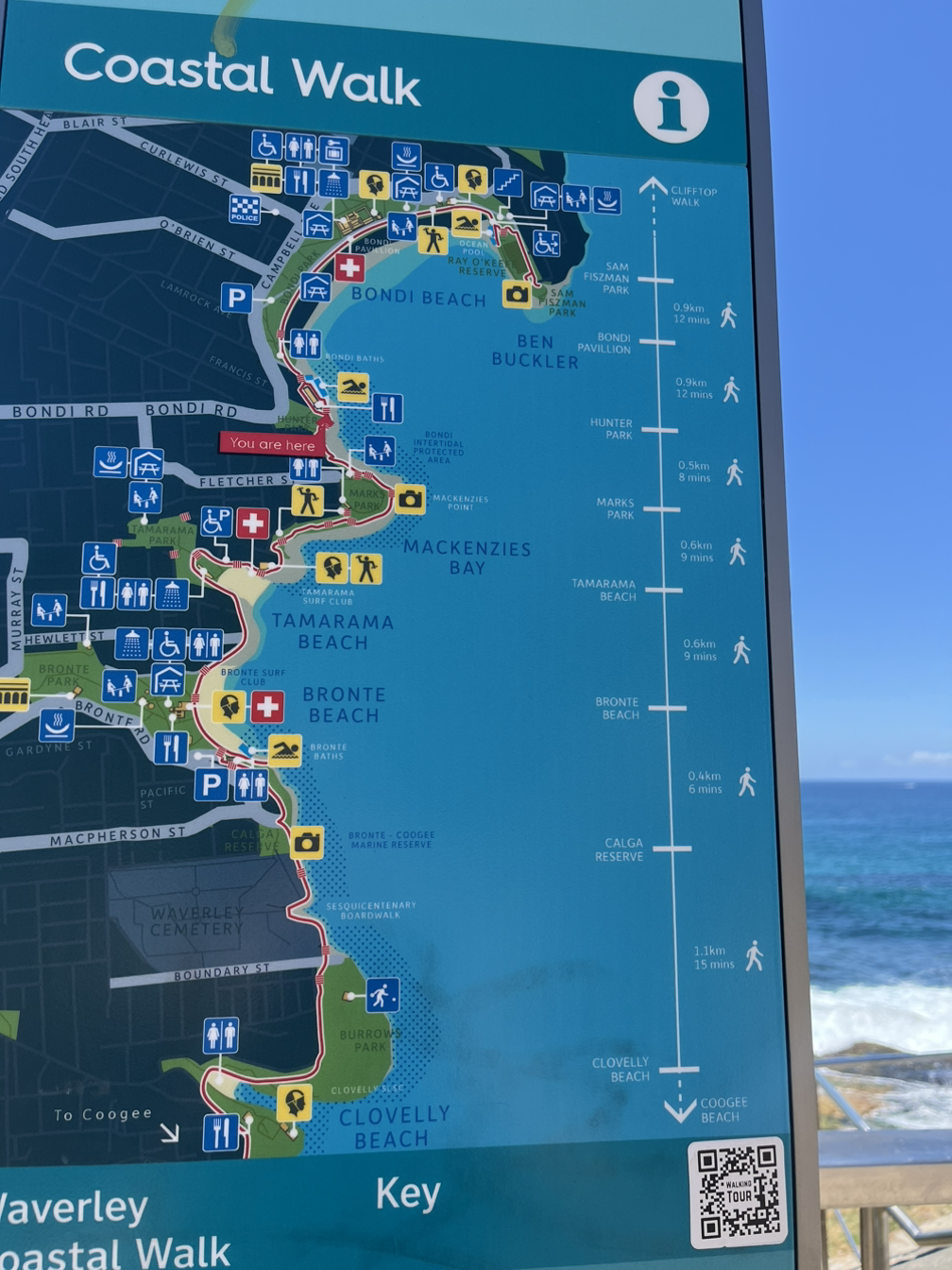 오늘은 시드니의 해변 여행을 떠나기로 한다. 홀리데이가 얼마 남지 않았다. 저 멀리 보이는 본다이 비치에는 까만 머리통들이 빼곡하다. 하지만 오늘 내 목적지는 그곳이 아니다. 시드니에는 Coastal Walk가 있다. 본다이 비치에서 쿠지 비치까지 해변가를 따라 걸을 수 있는 산책로다. 쭉 걸으면 한 시간 정도 걸리는 아주 길지도, 그렇다고 아주 짧지도 않은 길이다.