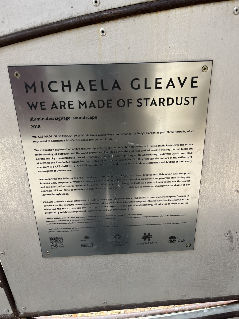 이렇게까지 예술적인 화장실은 처음이라 잠깐 당황스러운 마음도 들었다. 건물 바깥으로 나오는 휴식 공간 같은 곳조차도 예술 작품이 뒤로 걸려있고 조형물이 앞에 설치되어 있다. 시드니에서 만났던 노부부처럼 돈을 많이 벌어놓고 이제 여유로운 휴식을 취하는 사람들의 행선지가 바로 태즈메이니아인 듯하다. 오늘 읽은 책에 이런 내용이 나왔다. 소비가 예술을 촉진시킨다고. 아마도 돈 많은 사람들이 많이 모이니 이렇게 예술산업 또한 발달할 수 있지 않았나 싶다.