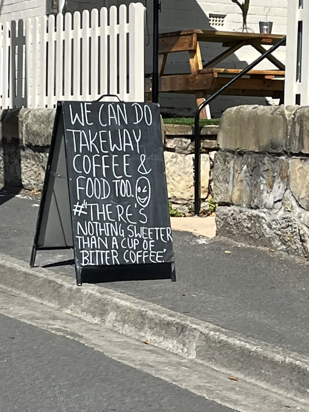 살라망카 마켓의 주차장에 주차를 해두고 나와서 본 카페의 입간판이다. 쓴 커피 한 잔보다 단 건 없다. Sweetter과 Bitter을 섞어 사용한 문구가 재치 있다.