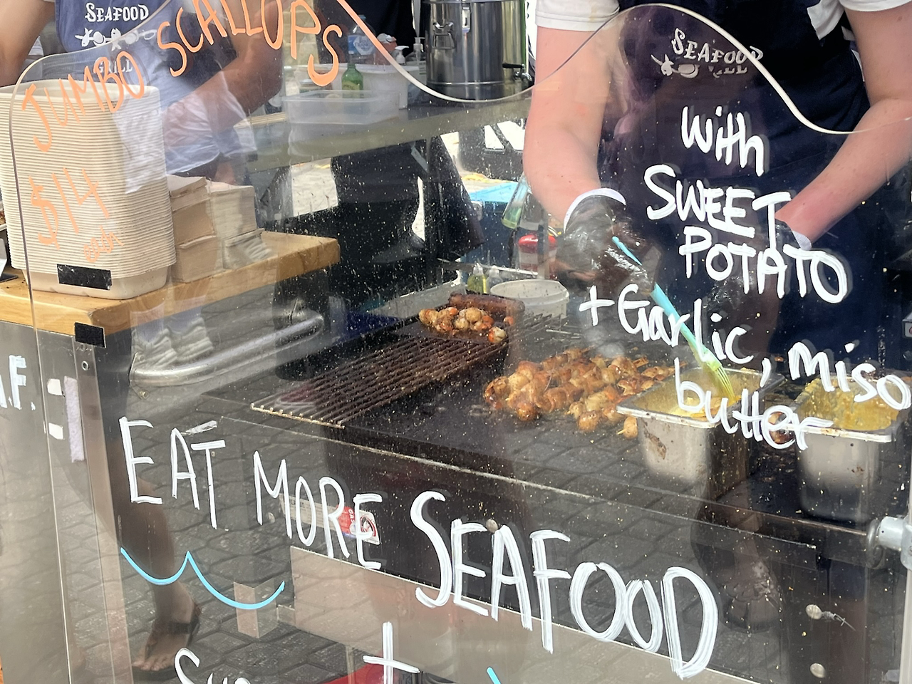 관자새우구이 꼬치집도 있었다. 여기 또한 버섯집과 마찬가지로 인기다. 십리 밖에서도 버터 냄새가 난다. 냄새에 홀린 듯이 먹어볼 수밖에 없을 만한 곳이다.