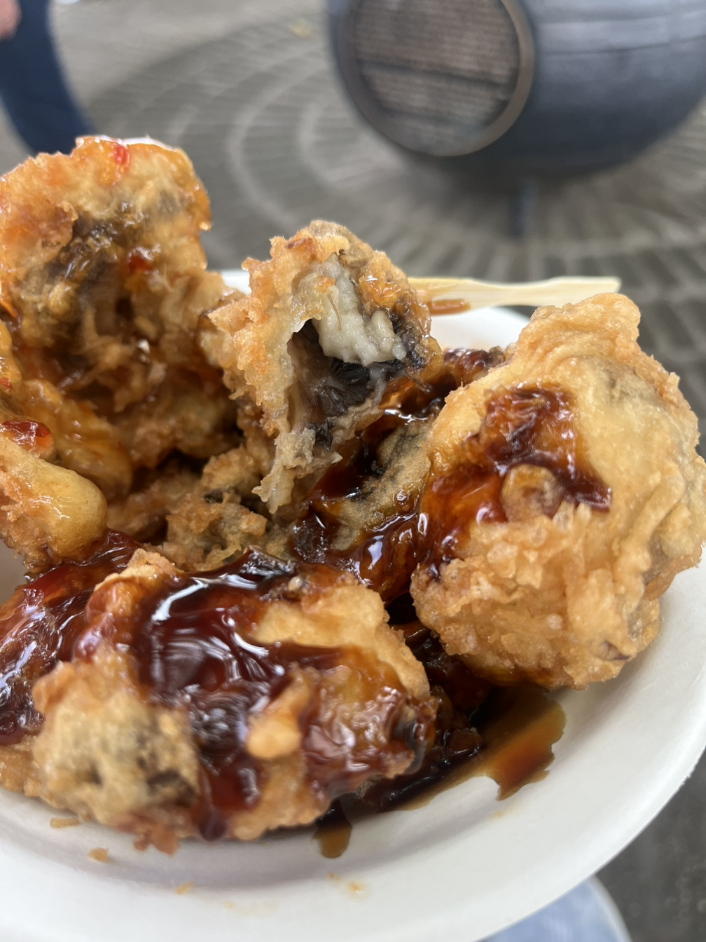 여기 버섯튀김이 그렇게 명물이라는 소문을 들었다. 진짜 사람들이 여기에 와글와글 모여 있다. 버섯튀김을 어떻게 만들었길래 맛있을 수가 있지? 궁금했다. 나는 원래 버섯을 좋아하긴 하지만 버섯 튀김은 생소한 음식이다.