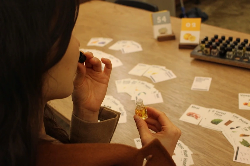 와인 평론가 아버지도 없고 ‘블랙 커런트’나 ‘구스베리’는 구경도 해본 적 없는 보통의 한국 사람이라면 어떨까. 우리는 어떻게 공부해야 와인의 아로마를 익히고, 다른 사람들이 공감하는 언어로 표현할 수 있을까. 지난 주말, 함께 와인을 공부하는 H와 와인비전에 방문했다. 와인 학습자들이 훈련 도구로 흔히 이용하는 아로마 키트와 와인비전에서 곧 출시 예정인 아로마 카드 ‘아로마 파인더’를 체험하고 이야기를 나눴다.