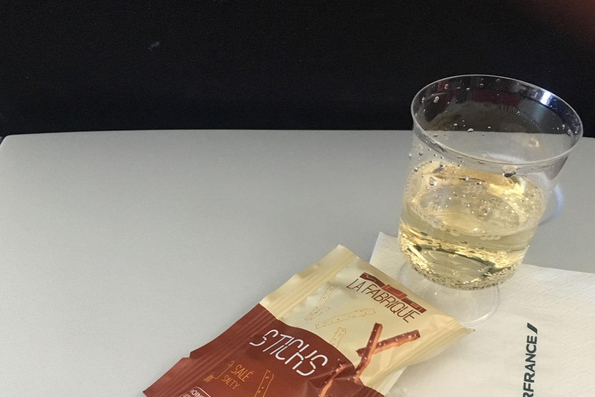 에어프랑스의 장점 중 하나는 후한 술 셀렉션이다. 이코노미에서도 식전주로 샴페인(인지는 모르겠으나 어쨌든 드라이한 스파클링 와인)을 준다. 레드와 화이트는 물론 있고, 식후에 꼬냑을 달라고 하면 꼬냑을 준다!