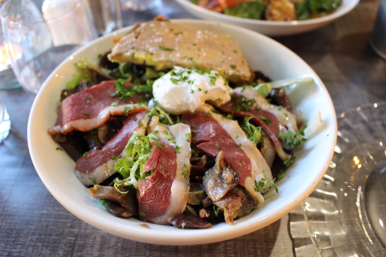 "라 브라스리 데 샤트롱(La Brasserie des Chartrons)"이라는 이름의 식당은 주변의 다른 가게들에 비해 꽤 붐볐다. 우리는 테라스 근처의 높은 테이블에 자리를 잡고 새우, 관자 등의 해산물 요리와 '남서쪽 샐러드'를 주문했다. 남서 지방 샐러드라고 말하는 게 더 정확하겠지만, 어쩐지 남서쪽 샐러드가 더 입에 붙는다. 남서쪽 샐러드에는 푸아그라와 오리 가슴살, 닭 모래집이 들어있었다. 유학시절 마트에서 모래집을 파는 걸 보고 신기해서 사 왔던 기억이 났다. 한국에선 잘 먹지도 않던 닭모래집 볶음이 갑자기 먹고 싶어져 요리했다가 처참히 실패했던.
