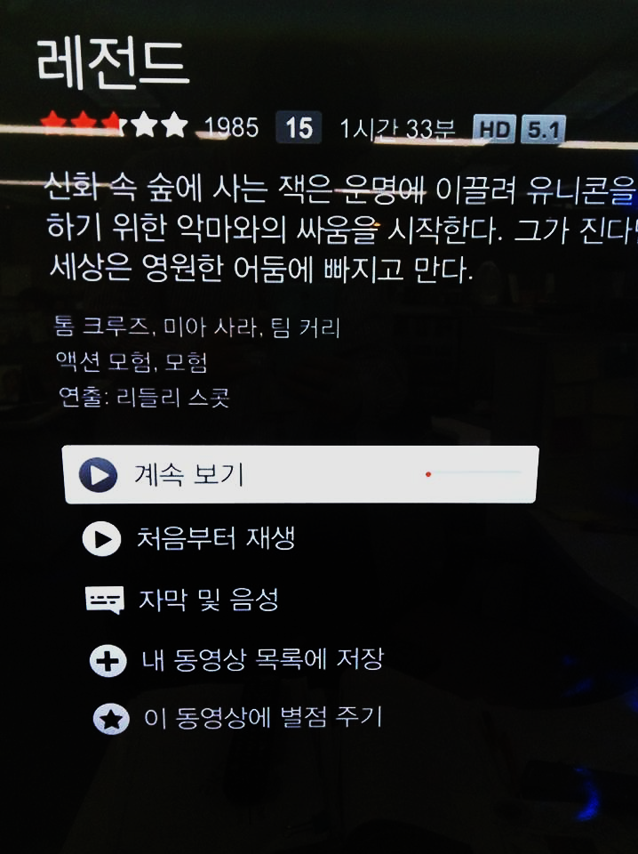 위의 영상에서 볼 수 있듯이 시청자가 가지고 있는 TV의 HDR 지원 여부에 따라, Dolby Vision을 지원하는 UHD TV를 가지고 있다면 왼쪽의 Dolby Vision 마크가 나올 것이고, HDR10을 지원하는 UHD TV를 가지고 계시다면 HDR 마크가 나올 것입니다.