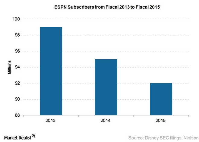 지난 6월 미국의 유명 투자 관련 사이트인 Motely Fool에서는 16년 ESPN의 가입자는 88M으로 줄어들 것이라고 예상을 했었습니다. (링크) 3년 만에 11M 가입자가 줄어든 것이죠. 11% 감소는 적은 숫자가 아닙니다. 여전히 미국 유료 방송을 시청하는 가구수가 98.4M라고 보면, ESPN을 시청 안 하는 인구가 늘고 있다는 것이죠.