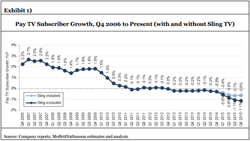 `15년 Q3, Q4 에 1%가 넘는 가입자 감소에 유료 방송 사업자들이 들고 나온 궁여지책 카드는 스키니 번들(Skinny Bundle - 미국은 번들이라는 미명 아래 보지도 않는 채널들이 묶여 있습니다.)이었습니다.