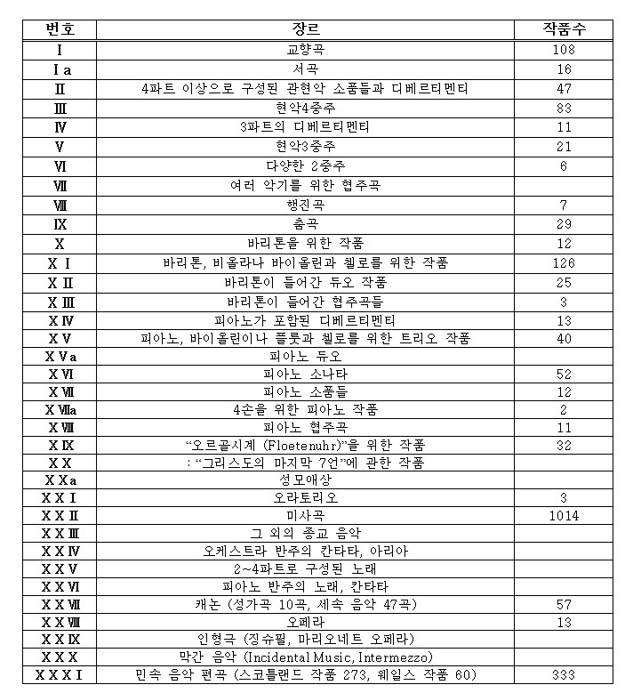 로마자 분류로 곡의 장르를 분류한 후에 작품이 쓰여진 순으로 번호가 매겨졌으니, 오히려 곡을 읽기가 훨씬 편해진답니다!!!