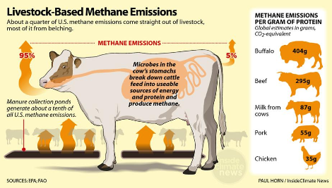 사람들의 생활이 조금 더 살기 좋아지고, 물질적으로 여유로워지면서 식습관도 많이 변화되었다. 그중에서 소고기는 육류 중 가장 좋은 것으로 인식되어 지금 이 순간에 엄청난 양이 유통되고 있다. 하지만, 소고기를 얻기 위해서 키우는 소는 풀을 씹는 과정에서 메탄을 발생시키고 메탄은 이산화탄소보다 몇 배 강력하게 지구 온난화에 영향을 미친다. 소를 키우기 위해서는 닭과 채소/밀 등을 키우기 위해 필요한 토지보다 몇 십배 더 넓은 토지가 필요하다.