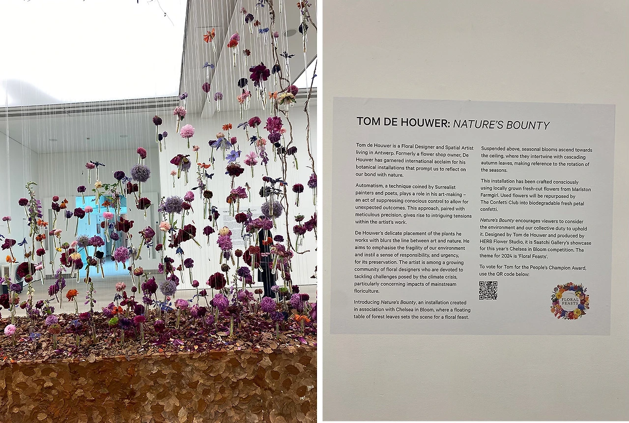 그리고 하나더 [Tom De Houwer : Nature's Bounty], 이작품은 1층 중앙공간에 설치되어있었다. 톰은 프로랄 아티스트로 명성이 높은 작가라고 한다.