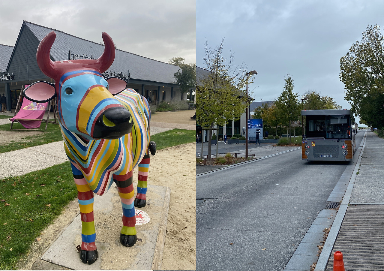 '몽생미셸'에는 이 소들이 많다. 뭐.. 진짜 소가 아니라 다채로운 색의 이런 소를 말하는 것이다. 그리고 무료 셔틀이 오가며 열심히 수도원으로 사람들을 날랐다.