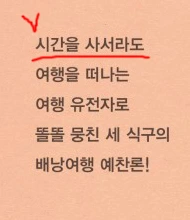 우리는 다시 장사를 접었다. 지인들은 이제는 당연하게 여겼다. 양가 부모님들만 지치시지도 않고 여전히 똑같은 말씀을 하셨다. 벌 수 있을 때 조금 더 벌어서 노후도 대비하고 아이 학비도 챙겨놓으라고. (중간 생략) 어떤 선택을 해야 미래의 해피엔딩에 이르게 될지 아무도 모른다. 우리는 그저 돈보다 당장의 시간이 조금 더 가치가 있다고 생각했다. 그래서 돈으로 시간을 사서라도 여행을 가려고 한다.