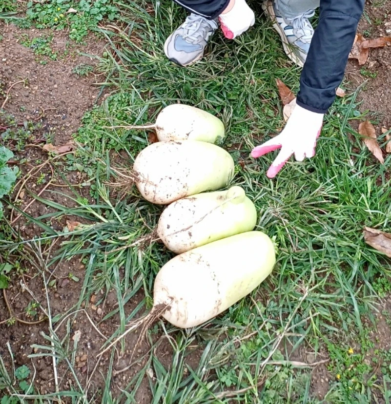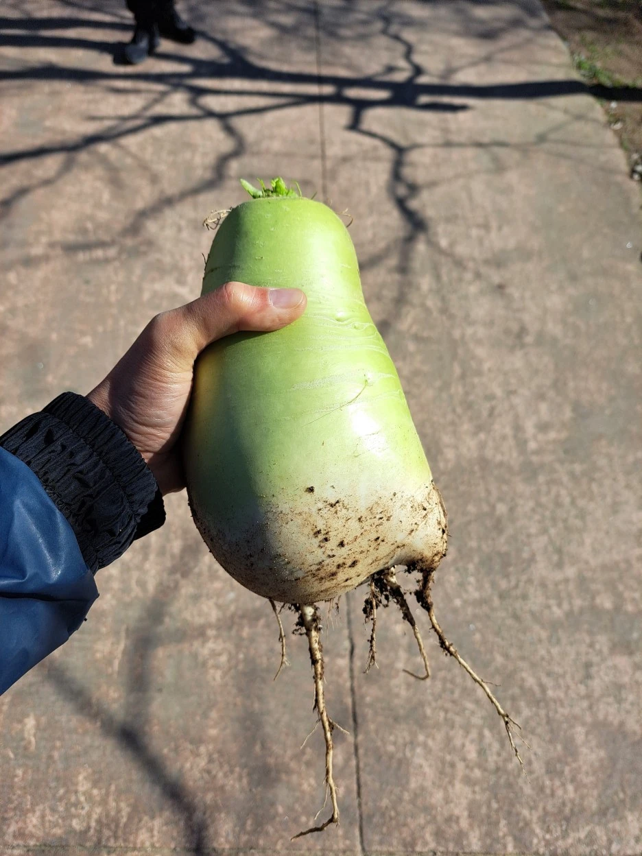 곧 영하로 떨어져서 남은 무 네 개도 수확하기로 했다.