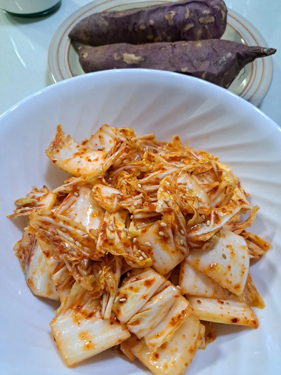 겉절이랑 같이 먹으려고 고구마도 구웠다.