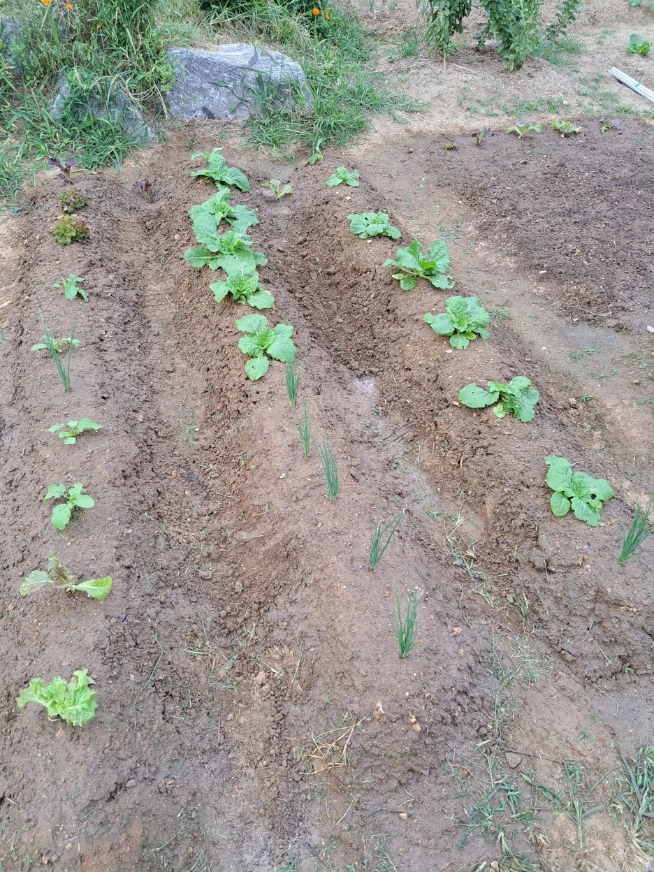 그래서 상추 모종을 사다가 다시 심었다. (그것도 20%는 또 죽었다)