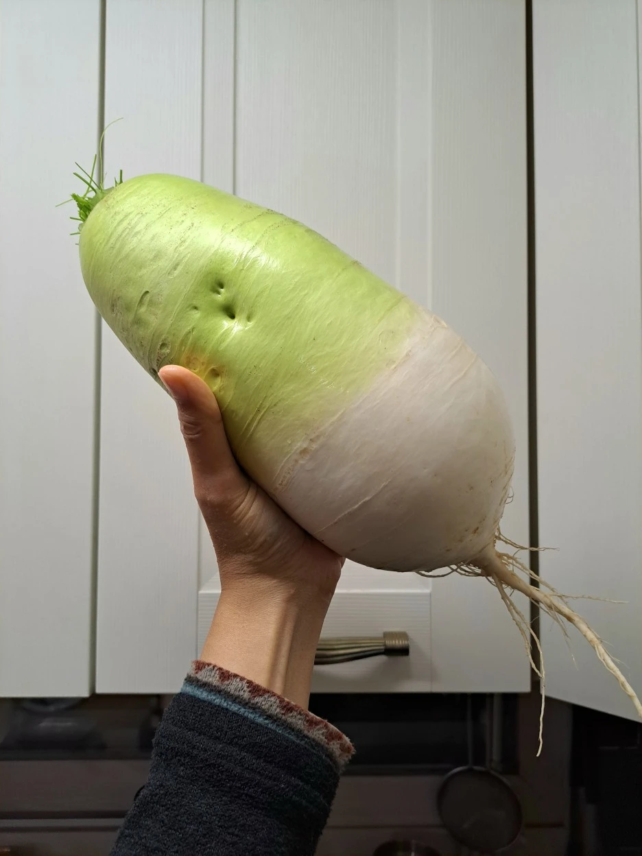구석에 있던 애는 좀 작지만, 큰 무는 정말 실하다.