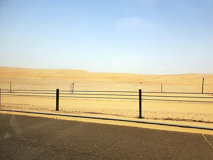 공항에서 픽업한 차를 타고 리와 사막까지 가는 길도 내내 사막이었다.