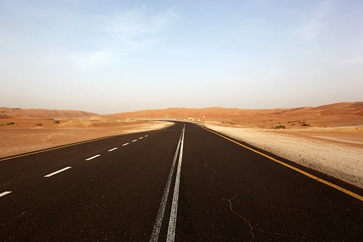 사막 한가운데 나있는 도로는 끝없는 직진이었다.