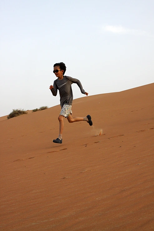 아이는 지치지도 않고 차에서 내릴 때마다 사막을 달리고 또 달렸다.