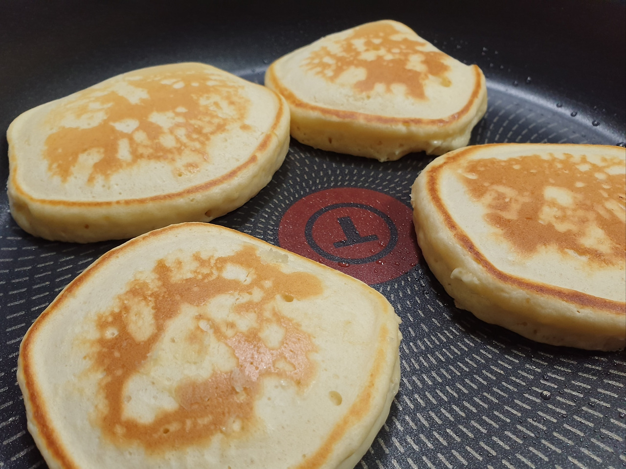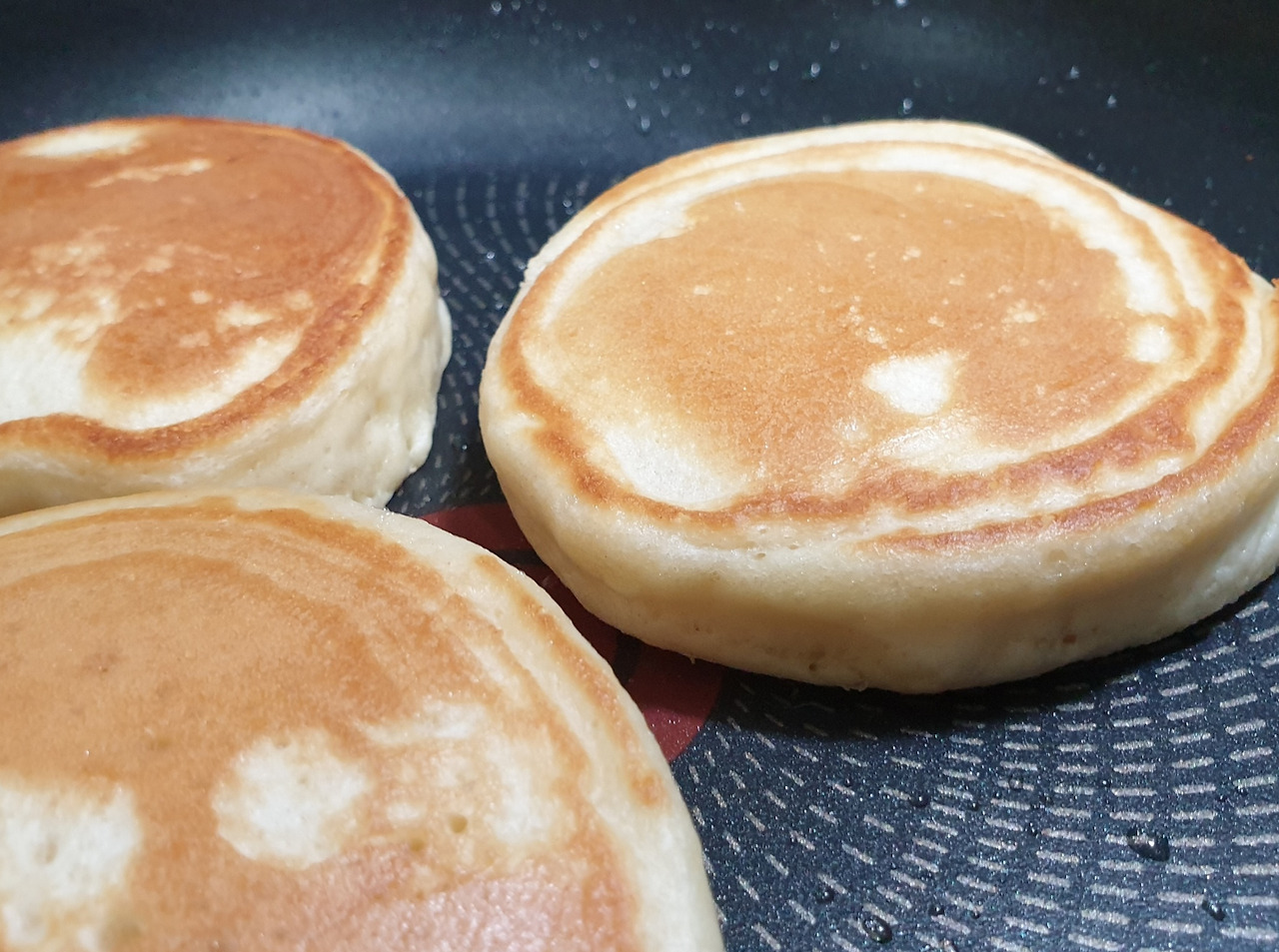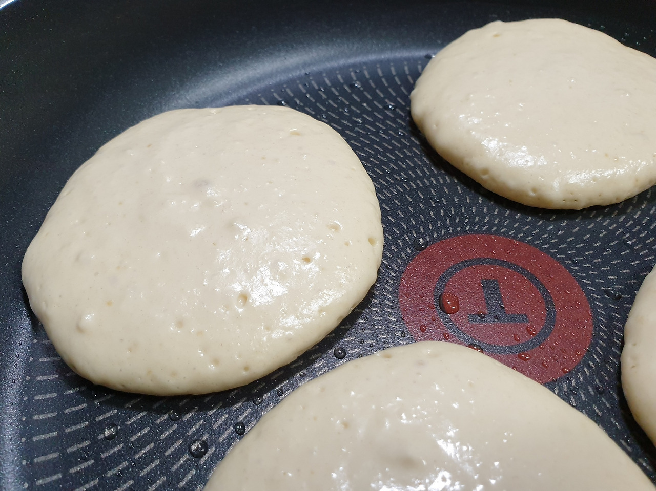 소량의 기름을 고루 바른 팬에 (중약불) 한 국자씩 떠서 익힌다. 기포가 보글보글 올라오면 뒤집을 타이밍!!!