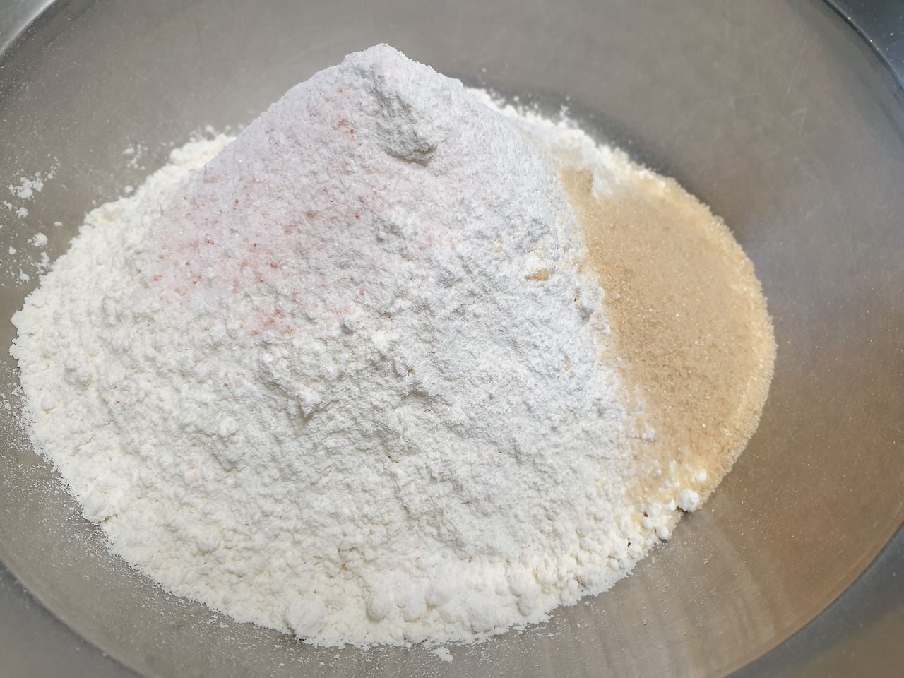 설탕은 원래 레시피는 이 정도 양이면 80그람쯤 넣어야 하지만, 딸기잼도 얹어 먹을 거니까 대폭 줄였다. 그러니까 더 넣어도 된다.
