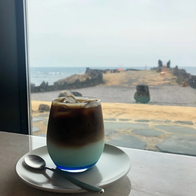 바깥 날씨가 좋아서 김녕라떼와 같은 빛의 푸른 바다가 보이는 날 한 번 더 마셔야겠다. 하긴 오늘도 비슷하긴 하다. 물론 섞고 난 후의 빛깔과.