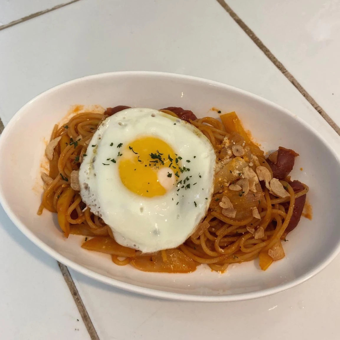 나폴리탄을 처음 접한 건 학교 앞 카페에서였습니다. ‘P’ 카페는 맛있는 커피와 조용한 분위기가 좋아 자주 가는 곳이었죠. 독특하게도 이곳에선 파스타를 팔았는데 그중 하나가 바로 나폴리탄 파스타였습니다. (나폴리탄이란 단어 뒤엔 스파게티가 오기도, 파스타가 오기도, 또는 아예 나폴리탄이라고만 불리기도 합니다. 여기선 각 식당에서 쓴 메뉴 이름을 살리기 위해 혼용하도록 하겠습니다.) P의 나폴리탄을 처음 맛봤을 때, 저는 사랑에 빠져 버렸습니다. 기름에 튀기듯 바싹 익힌 써니사이드업의 계란 프라이가 올라간 빨간 파스타라니! 노른자를 터뜨려 면과 섞어주고 비엔나 소시지를 포크로 찍은 뒤, 면과 함께 후루룹 먹었습니다. 그렇게 입안에 착 감기는 달짝지근한 파스타는 처음이었습니다. 은은한 케챱맛과 기름의 고소한 풍미가 어찌나 인상적이던지 다음날에 번쩍 떠오를 정도였죠. 그 길로 저는 2주에 한 번은 꼭 들러 나폴리탄을 맛보는 단골 손님이 되었습니다.
