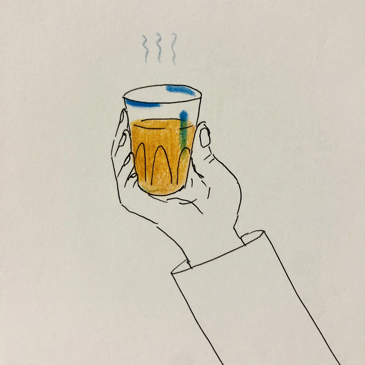 색은 딱 밀크티, 또는 더위사냥 색. 위에는 불투명한 우유막이 한 커풀 덮여있었다. 후후 불면서 냄새를 살짝 맡아보니 생강향과 홍차향이 느껴졌다. 조심스럽게 한 입 후룹. 아, 이런 맛이었구나. 이건 내가 처음 먹어보는 맛이 확실해. 근데 어딘가 포근해진다. 왜일까?