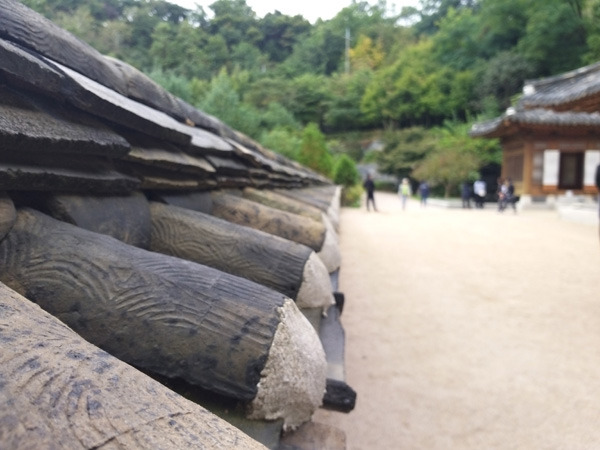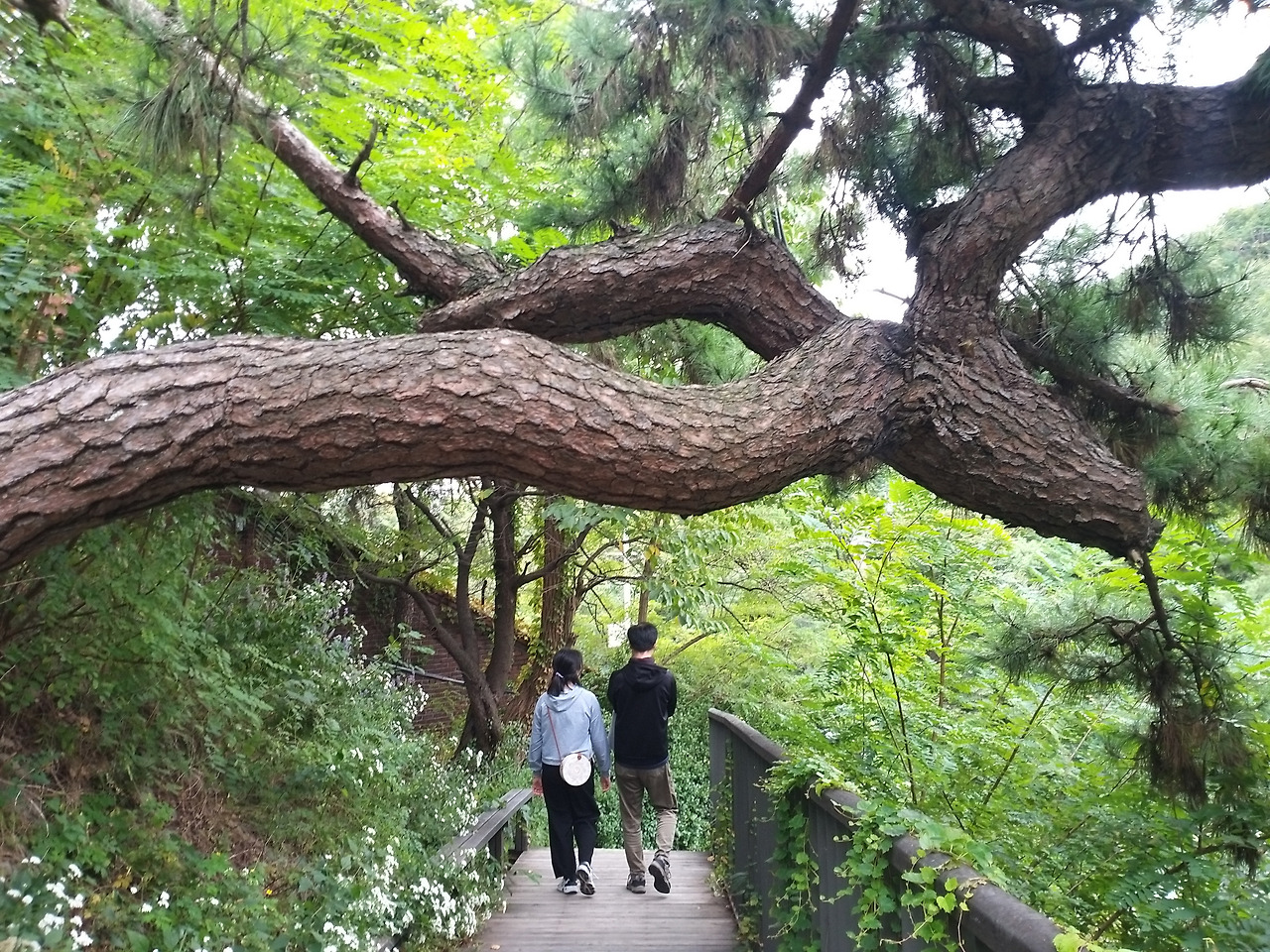 눈 아래 오붓한 한옥 지붕이 보여 흔연한 마음이 성큼 내달린다. 나무 계단을 사뿐사뿐 뛰고 굵은 가지들이 구렁이같이 뒤얽혀 어깨동무를 하고 있는 오솔길을 경탄하며 내려간다.