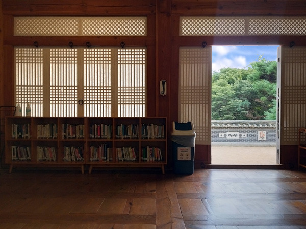 한옥도서관에 서서 나는 여기가 아닌 다른 어딘가에 모여있는 생각들을 불러본다. 그 옛날 책을 아꼈던 세종대왕의 생각을 가만히 들여다보고 인자한 어머니였던 신사임당의 숨결로 가슴을 채운다. 그들은 바로 내 옆에서 한걸음 한걸음 지그시 발맞추어 걷는다. 나는 눈길을 돌려 그 존재의 당위성을 구태여 확인하지 않는다. 어릿어릿 나부끼는 몸짓의 그림자가 나의 몸을 보듬고 마음을 녹인다. 그들이 살았고 거닐었을 고즈넉한 공간이 나에게 다가오고 연달아 말을 걸어온다. 그 시간은 멈추고 싶지 않기에 발걸음은 멈추지 않는다.