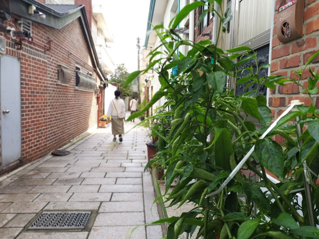 걷다가 하늘 한 번 올려다보고 바닥 한 번 내려다보고 나무를 보고 지붕을 보고 담벼락을 보고