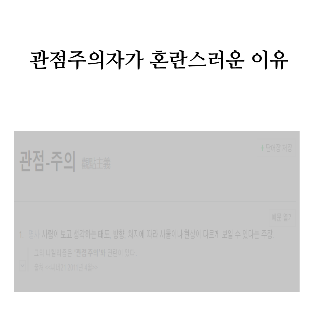 4. 관점주의자들은 세상에 완벽한 정답, 완전한 기준은 없다고 생각한다.