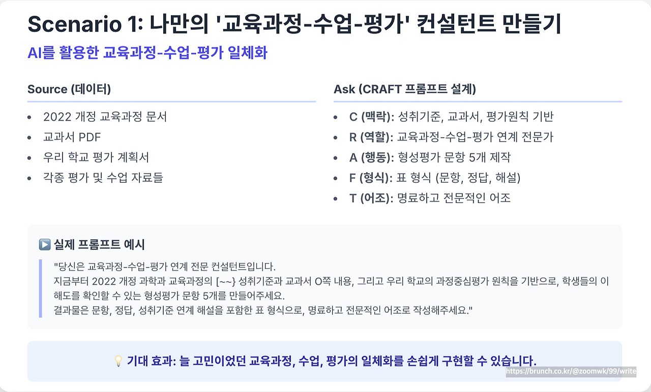 1. 명확한 맥락(Context)과 역할(Role)을 부여하고, 구체적인 행동(Action)과 형식(Format), 그리고 원하는 어조(Tone)를 담아 정교하게(CRAFT) 만들 때, AI는 최고의 결과물을 내놓습니다.