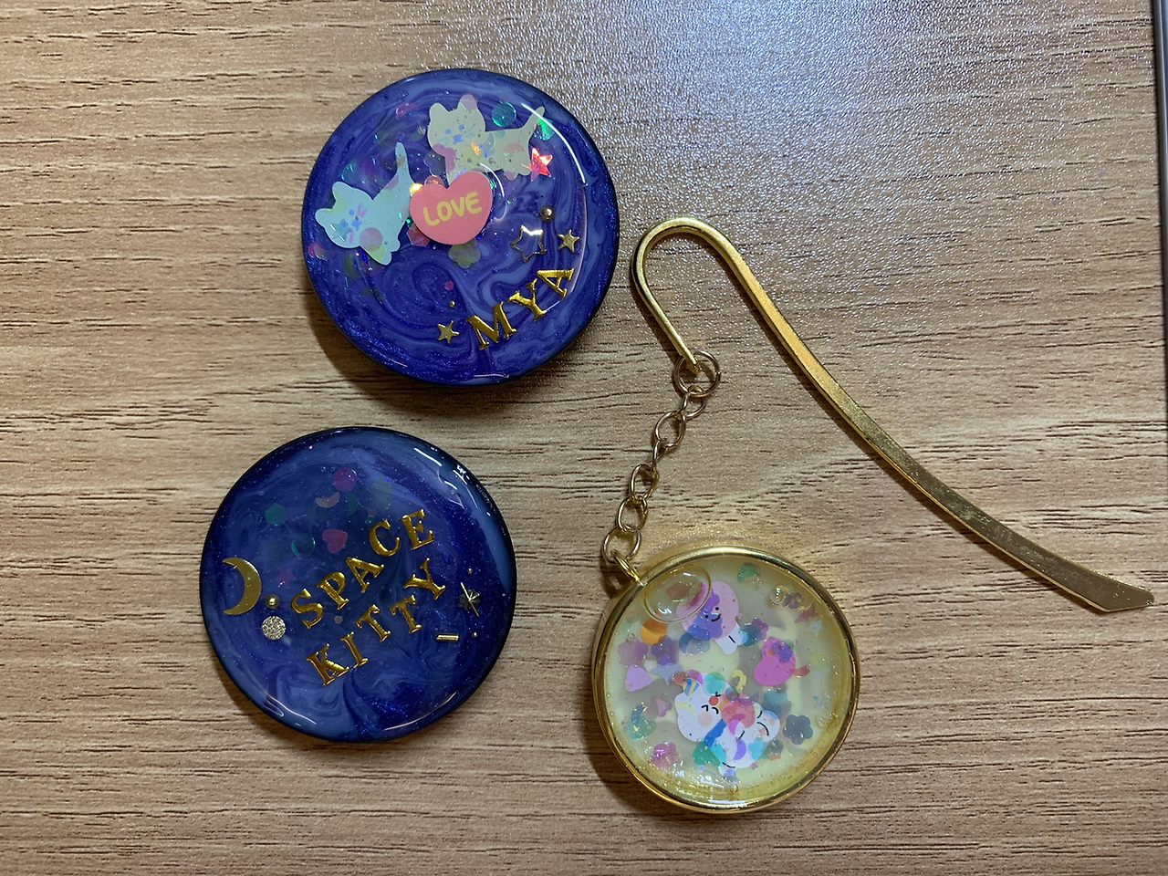 이렇게 인내의 시간을 거쳐 몰드에서 굳어진 레진을 꺼내면, 그게 그렇게 신기하고 재밌다. 정말 너무 신기하다. 잘 굳어진 레진을 탈형할 때의 쾌감도 끝내준다. 오죽하면 탈형(디몰딩)하는 장면만 모아 놓은 영상이 유행할 정도다. 모양을 갖춘 레진 작품은 스티커나 비즈를 이용해 꾸며주면 된다. 꾸미기 작업이 가장 공이 많이 들어가지만 재밌다. 그동안 목적 없이 모아 둔 스티커들을 여한 없이 쓸 수 있다.
