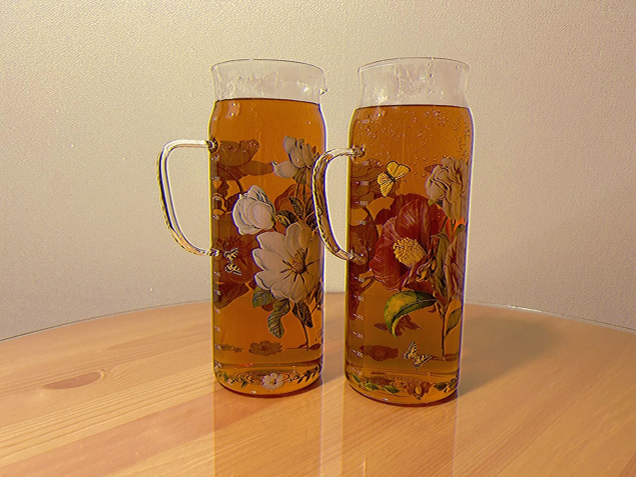 주전자를 샀으니 물을 담을 물통도 사야 한다. 친정집에서 엄마가 늘 플라스틱 물병을 쓰며 미세 플라스틱 걱정을 했던 게 떠올라 유리 물병을 사기로 했다. '냉장고 유리 물병'이라 검색하니 화려한 꽃무늬가 몸통을 감싼 유리 물병이 잔뜩 나온다. 딱 내 취향이라 검색 범위를 좀 더 좁혀 '레트로 유리 물병'이라고 검색했다. 웬걸 델몬트 주스병이 나온다. 너무 반갑고 귀여워서 용량별로 여러 개 담았다가 아차, 설거지할 생각을 하니 아득하다. 손이 쑥쑥 들어가는 물병을 사기로 했다. 내가 고른 꽃무늬 2개, 신랑이 고른 깔끔한 물병 2개. 관리하기 편하게 뚜껑이 플라스틱인 제품을 살까 하다가 역시 찝찝해서 스댕 제품으로 골랐다.