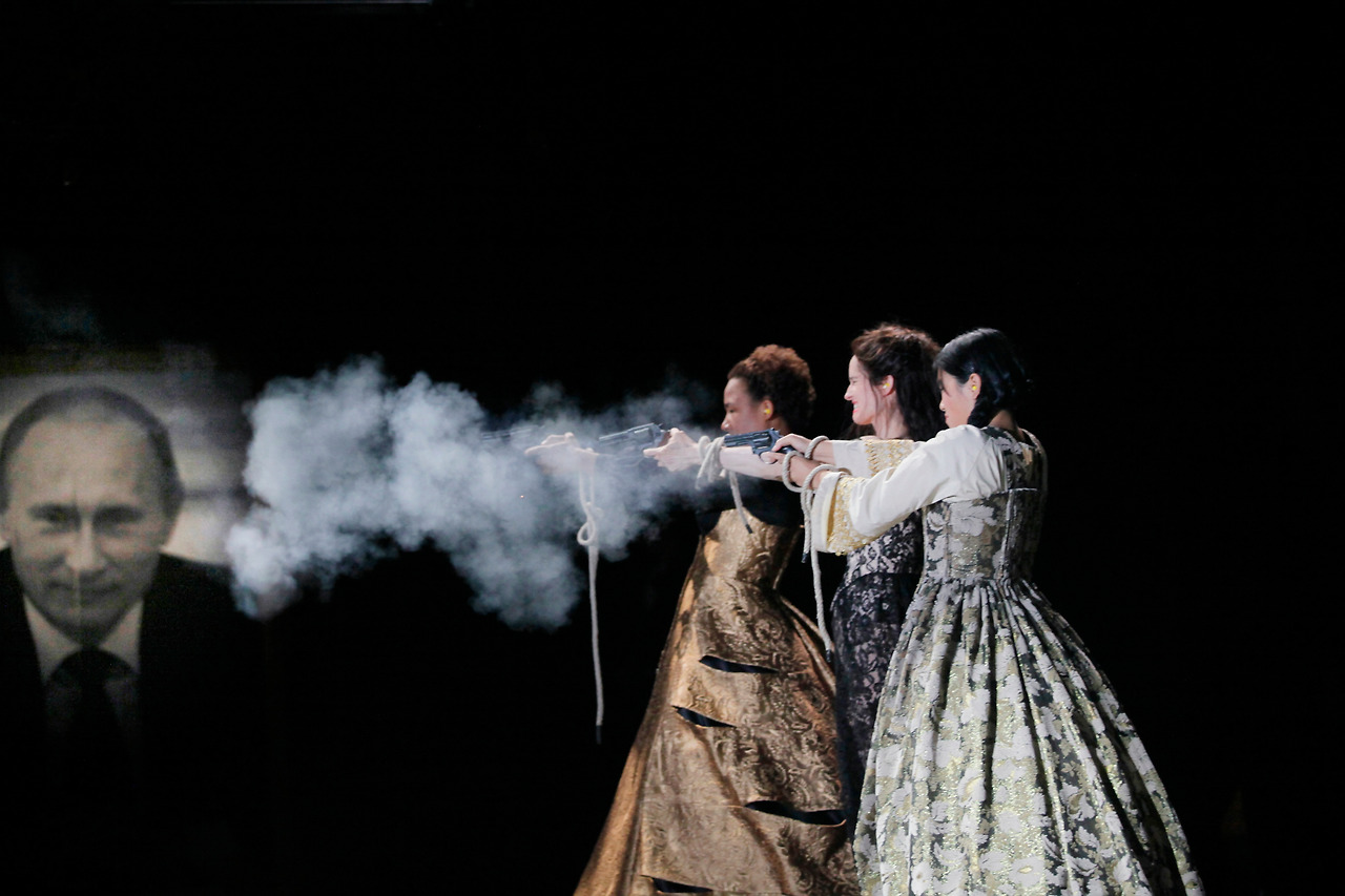 마지막에 바바라는 무대 뒤쪽 푸틴의 거대한 초상화를 온몸을 던져서 찢는다. 바바라가 금색 액자를 두른 푸틴의 초상화를 찢고 튀어나왔을 때, 관객들 모두 함성을 지르며 환호한다. 공연의 마지막 이미지는 러시아의 우크라이나 침공으로 세계대전의 위협에 놓인 서유럽의 상황을 신경질적인 방식으로 암시하는 것처럼 보인다. 초겨울 난방비 걱정에 실내 히터를 끈 채 두꺼운 옷을 겹겹이 입거나, 소형 기름통을 들고 주유소 앞에 길게 줄을 서서 서유럽이 당면한 ‘푸틴의 전쟁’을 실감하고 있는 중이니까. 이 작품이 2019년 9월 15일에 초연됐다는 사실을 인지하지 못한다면 마지막 장면은 너무 교훈적이라고 느껴질 것이다.