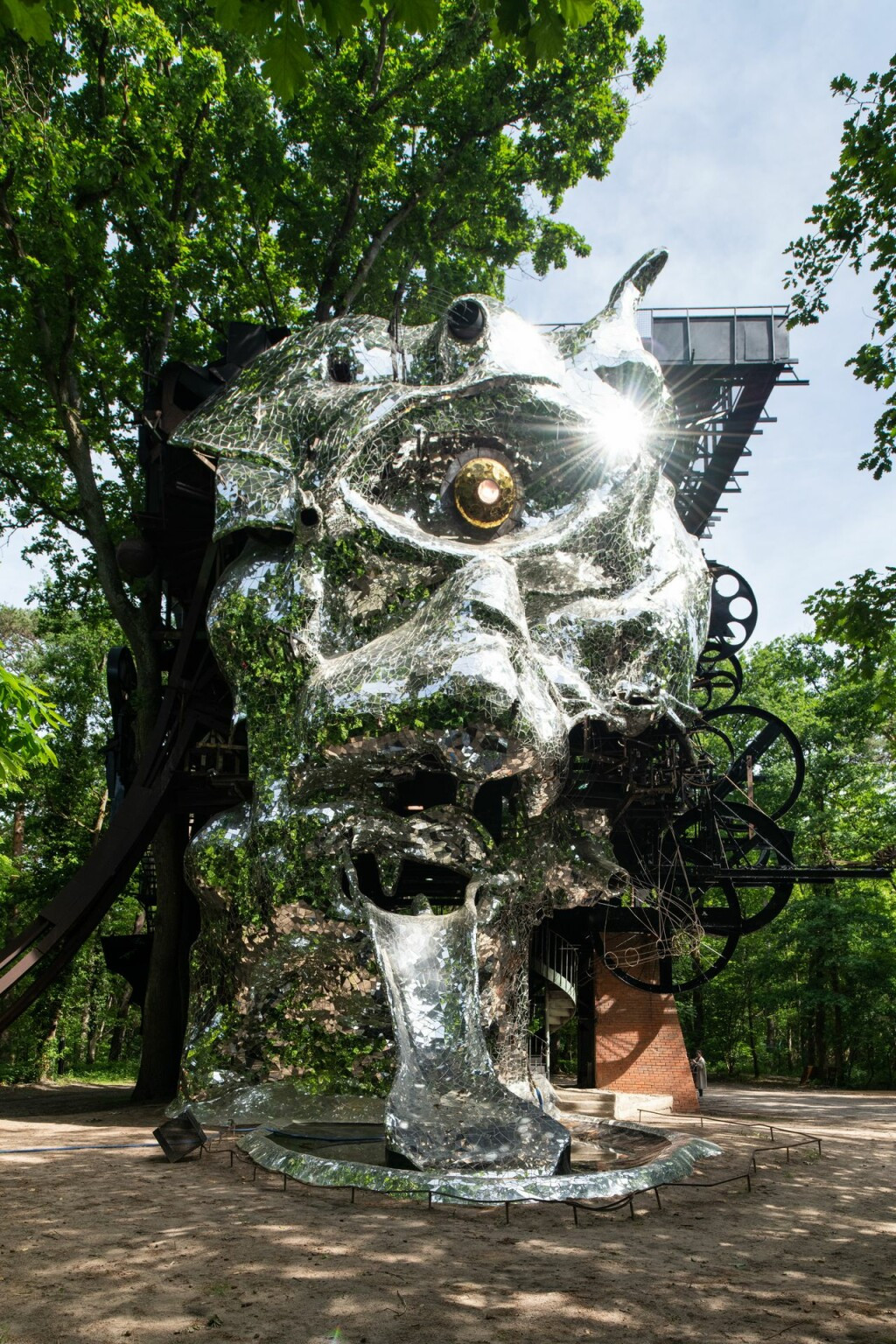 몸이 없는 거대한 머리에는 황금색 외눈이 박혀있다. 표면은 거울장식 때문에 햇빛에 반짝인다. 씨클롭에서 중요한 부분을 차지하는 니키 드 생팔의 '거울의 얼굴' 이다. 이빨이 빠진 입에서는 물이 흐르는 긴 혓바닥이 미끄럼틀처럼 지상으로 떨어진다. 관객은 씨클럽을 관람하면서 에펠탑과 봉피듀 센터 공사장에서 주워 온 거대한 철근 구조물을 재발견하게 되고, 장 팅겔리의 공간을 가득 채우는 ‘메타 맥시’(Méta-Maxi, 1971—1975)와 '메타 하모니' (Méta-Harmonie, 1981) 작품에서 메커니즘의 압도적 에너지와 재치 있는 유머를 체험하게 된다.