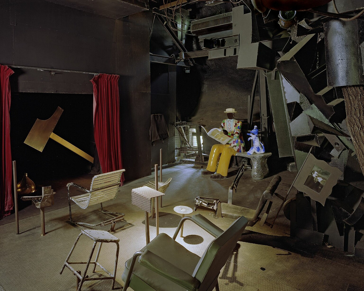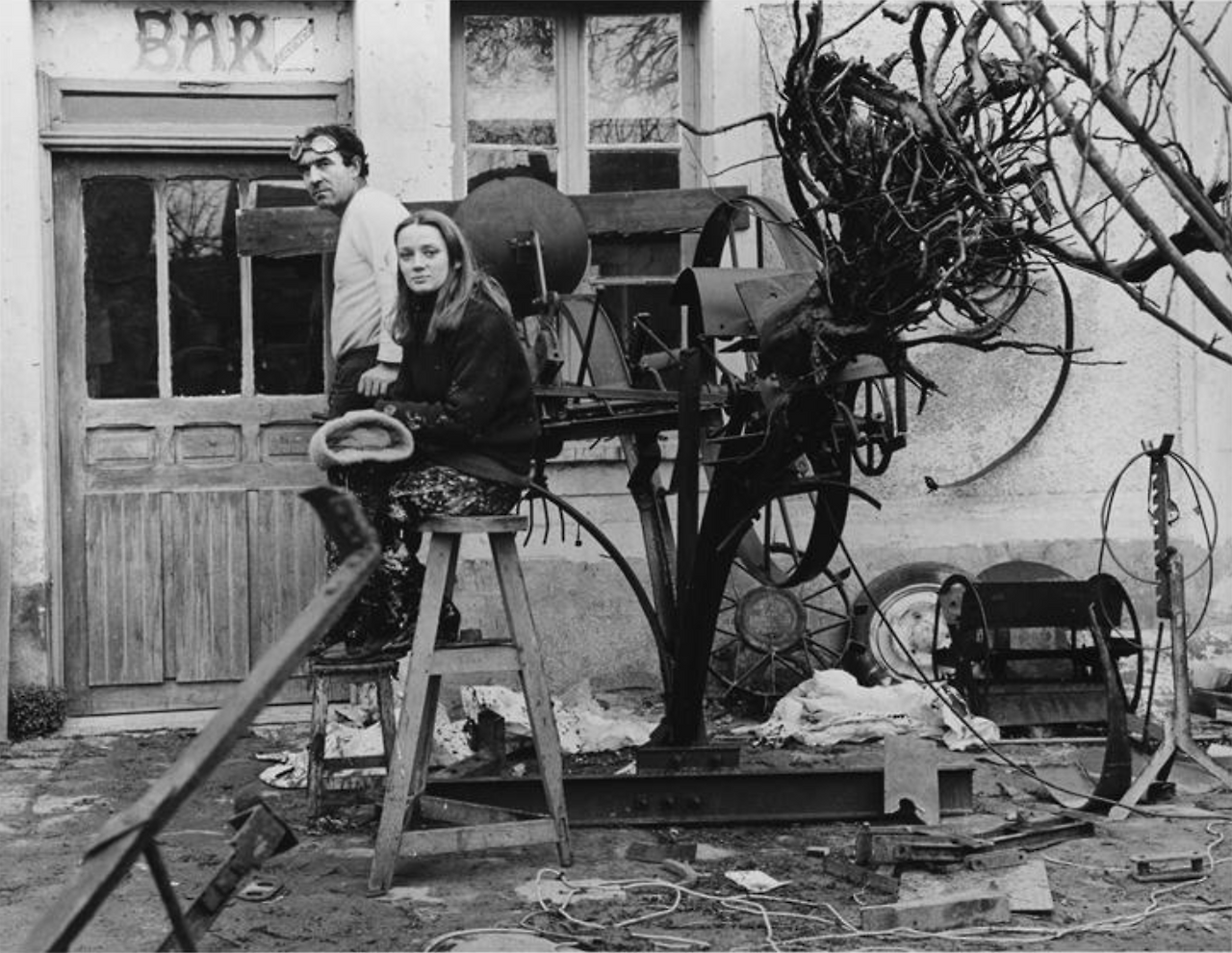 장 팅겔리는 스위스 현대 조각을 대표하는 키네틱 아트(kinetic art) 예술가이다. 미술과 기계를 결합해 독특한 작품을 창작했는데 주로 못쓰는 기계를 조합하고 버려진 잡동사니를 작품의 재료로 사용했다. 스위스 대학에서 디자인을 전공한 그는 1952년 첫 번째 부인 에바 애플리(Eva Aeppli)와 함께 파리로 이주한다. 당시 미술계를 주도하던 추상 표현주의를 혐오하던 그는 1960년 10월, 누보 레알리즘(Nouveau réalisme) 선언문에 서명하면서 본격적으로 예술과 삶 사이의 경계를 무너뜨리는 새로운 예술운동에 참여하게 된다. 그 해 에바와 이혼한 팅겔리는 니키 드 생팔(Niki de Saint-Phalle)과 예술적 교류를 하기 시작하면서 연인으로 발전하고 1971년 두 번째 결혼을 하게 된다. 1963년 말, 장 팅겔리와 니키 드 생팔은 '밀리 라 포레' (Milly-la-Forêt) 도시 근처 에손(Essonne) 지역 '쑤와시 슈흐 에꼴르' (Soisy-sur-École)에 있는 댄스 바 '오 슈발 블렁'(Au Cheval Blanc)를 구입하여 정착한다.