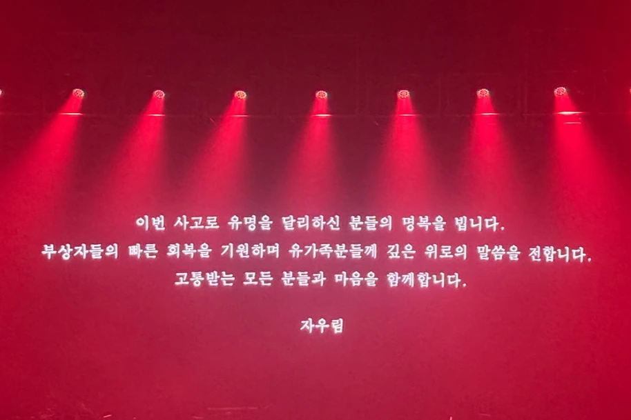 노래가 끝나고, 인사를 하기 전 자우림은 말했다. 오늘 사고로 명을 달리하신 분들을 위해 잠시 묵념의 시간을 갖자고. 나는 공연과 관련된 모든 사람들에게 감사하면서 애도했다. 그렇게 공연의 1부는 전반적으로 조금 어두운 분위기로 진행됐다.