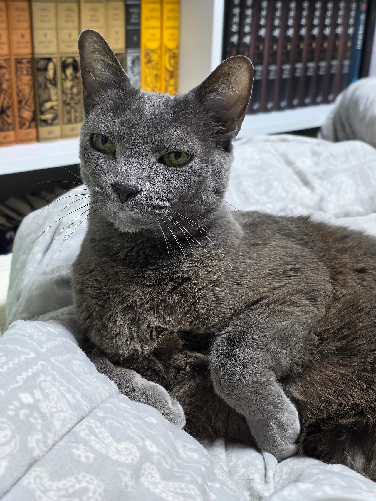 초록빛 눈, 잿빛 털, 포도색 발바닥, 늘 바짝 세운 꼬리까지, 온몸으로 내게 사랑한다 말하는, 내 영원한 사랑.