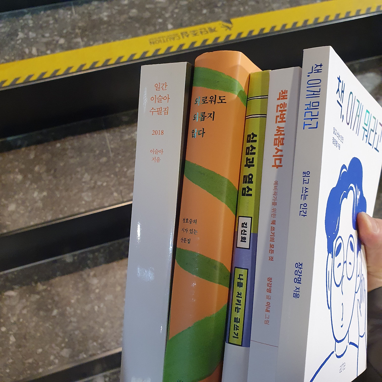 가장 먼저 찜한 책은 <일간 이슬아 수필집>이다. 이슬아 작가는 SNS에서 어렴풋이 여러 번 들었다. 떠오르는 작가라고들 했지만 한 번도 관심을 가져본 일이 없었다. 이 책은 '일간 이슬아'라는 온라인 사이트에서 구독을 하면 매일 그녀가 쓴 에세이 한편씩을 전송해주는데, 한 해 동안 쓴 글들을 묶어놨다. 이번 기회에 이 책을 산 이유는 내용이 궁금해서라기 보다는 하루도 빼놓지 않고 일 년 간 쓴 글을 묶어낸 작가의 정신력이 궁금해서였다. 들쭉날쭉 글을 쓰는 나는 이슬아 수필집을 '글은 엉덩이로 쓰는 것이다.'라는 하나의 오브제로 삼고 싶었다. 글이 써지지 않을 때면 매일 한 편씩 써낸 그녀의 에세이를 보고 '뭐든 세상에 안 되는 건 없구나.'라며 자아성찰을 할 수 있게 되려나.