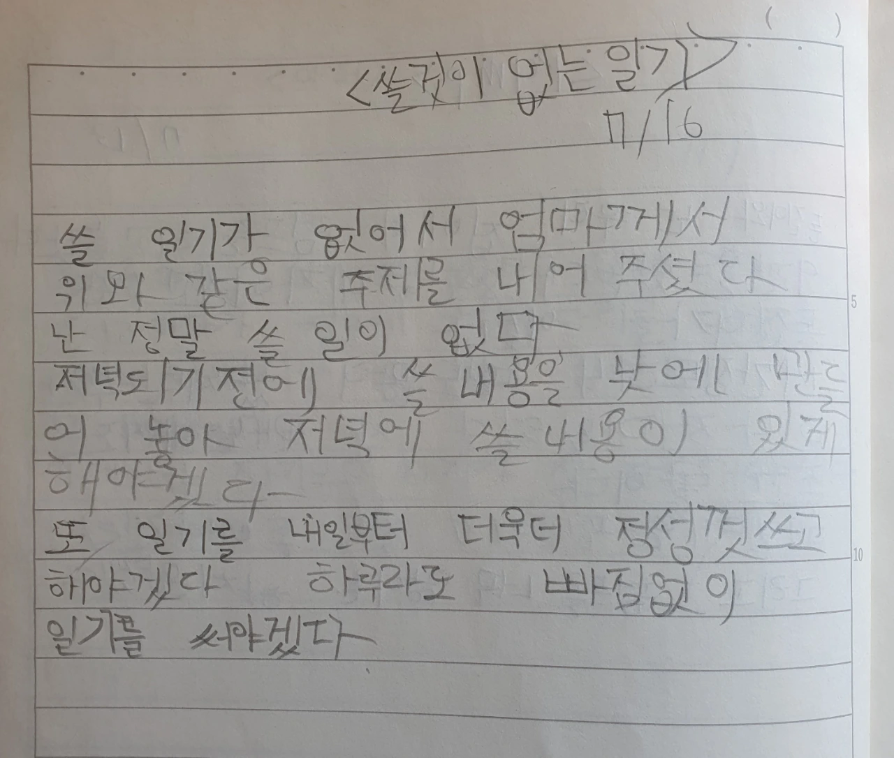 쓸 일기가 없어서 엄마께서 위와 같은 주제를 내어 주셨다.