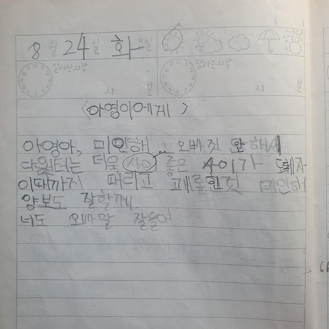 이때까지 때리고 괴롭힌 것 미안해. 양보도 잘할게.