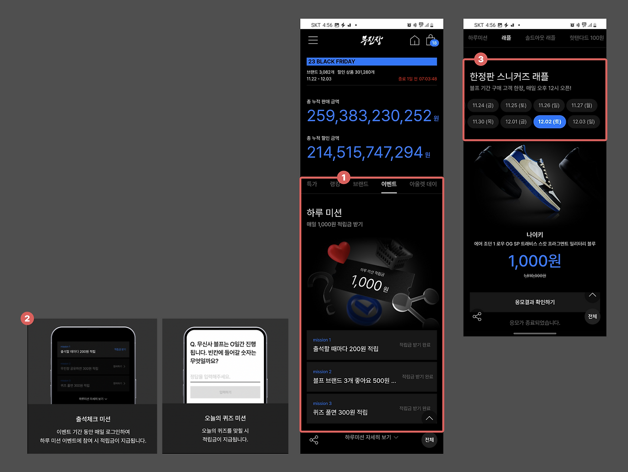 (1)하루 미션으로 상품을 탐색하도록 유도해 매일 적립금을 지급하고, (2)'추첨식 복권', 즉 래플 이벤트를 일자별로 열어 이벤트를 보러만 와도 매일 로또를 구매하는 것과 같은 심리적 효과를 주고 있어요.
