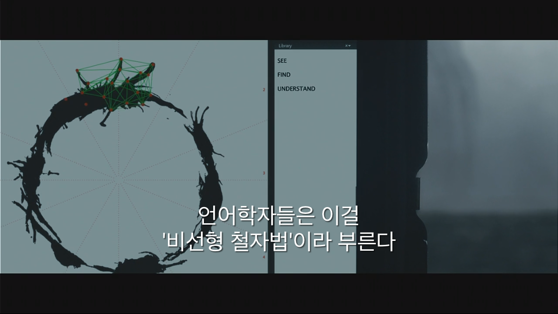 영화의 주요 줄거리는 주인공인 언어학자 루이스가 외계 생물체(이하 햅타포드, 7개의 발)의 언어를 분석하고 그들과 소통하게 되는 것이다. 영화에선 언어가 우리의 사고방식에 미치는 영향에 대해서 이야기한다. 흔히 '사피어-워프 가설'이라 불리는 언어학적 가설에 따르면, 사용하는 언어가 생각하는 방식을 결정하고 사물을 보는 시각도 바꾼다고 한다. 햅타포드어의 가장 중요한 특징 두 가지는 다음과 같다.