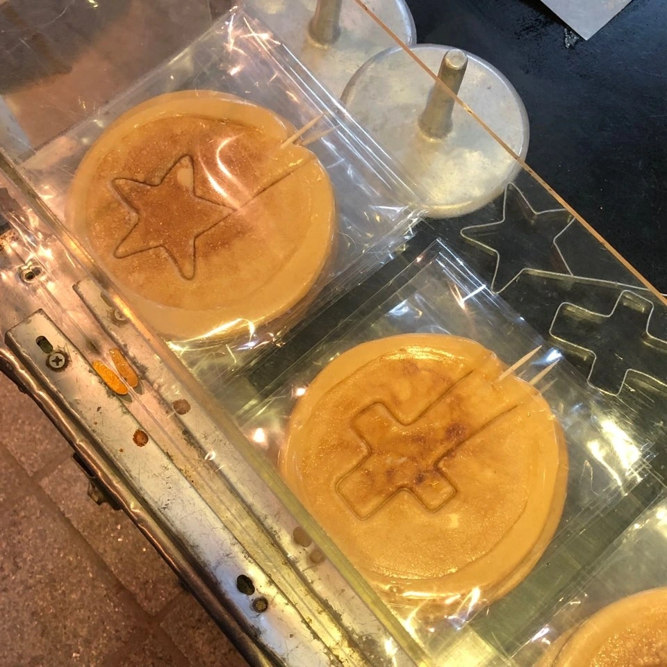 파티에 참석하지 않는 대신 내가 선택한 것은 '산책'이다. 고요한 달밤에 전주 한옥마을을 산책한다는 것은 생각만 해도 낭만적이었다. 텅 빈 방에 올라가 짐을 풀자마자 설레는 마음을 안고 밖으로 나왔다. 5분 정도 걸었을까. 고즈넉한 밤길을 자연스럽게 밝히고 있는 등불이 보이기 시작했다. 등불과 등불 사이는 가깝지도 않고 멀지도 않아 어둠이 있어 등불이 빛날 수 있음을 증명해줬다. 한옥의 처마 끝에 걸린 등불은 저마다 다른 모양으로 빛나고 있었다. 그중 네모난 모양에 한지를 덕지덕지 붙여 만든 등불을 보면서 한동안 불멍(불을 보고 멍하니 있는 것)을 때리고 있는데, 달고나 냄새가 났다. 달고나는 강력한 향수를 불러일으키는 힘을 가지고 있다. 달고나 냄새만 맡으면 초등학교 앞 문방구 아저씨가 생각나니 말이다. 문방구 아저씨는 초등학생들을 상대로 장사를 하면서 한 번도 웃어주는 법이 없었다. 심지어 열심히 별 모양 달고나를 파서 먹다가 실수로 부서진 달고나 때문에 울고 있는 아이도 달래주지 않았다. 모양대로 잘 파먹어 하나를 더 달라고 온 손님에게는 더욱 엄격했다. 달고나 테두리 그대로 잘 먹었는지 확인하는 순간에만 아저씨의 눈빛은 살아났다. 전주에서 나는 달고나 냄새를 따라가 도착한 곳은 구멍가게였다. 구멍가게 아저씨는 문방구 아저씨와 달리 달고나를 만들 때도 눈빛이 살아있었다. 불 위에 큰 주걱을 올려두고 설탕과 소다를 젓고 있는 아저씨의 팔목 스냅에서 전문성이 느껴졌다. 아니나 다를까 구경하고 있던 나와 눈이 마주치자 "달고나, 별거 아냐. 한번 해볼래?"라는 무언의 언어를 눈썹에 담아 올리셨다. 나도 모르게 "달고나 하나 주세요."라는 말이 입 밖으로 나왔다. 오랜만에 받아본 별 모양 달고나는 작고 가벼웠다. 반면 손은 두툼하고 커져버려 달고나를 하기에 불리한 상황이 돼버렸다. 게다가 추운 날씨 덕분에 손이 달달 떨려서 제대로 시작도 못해보고 망해버렸다.