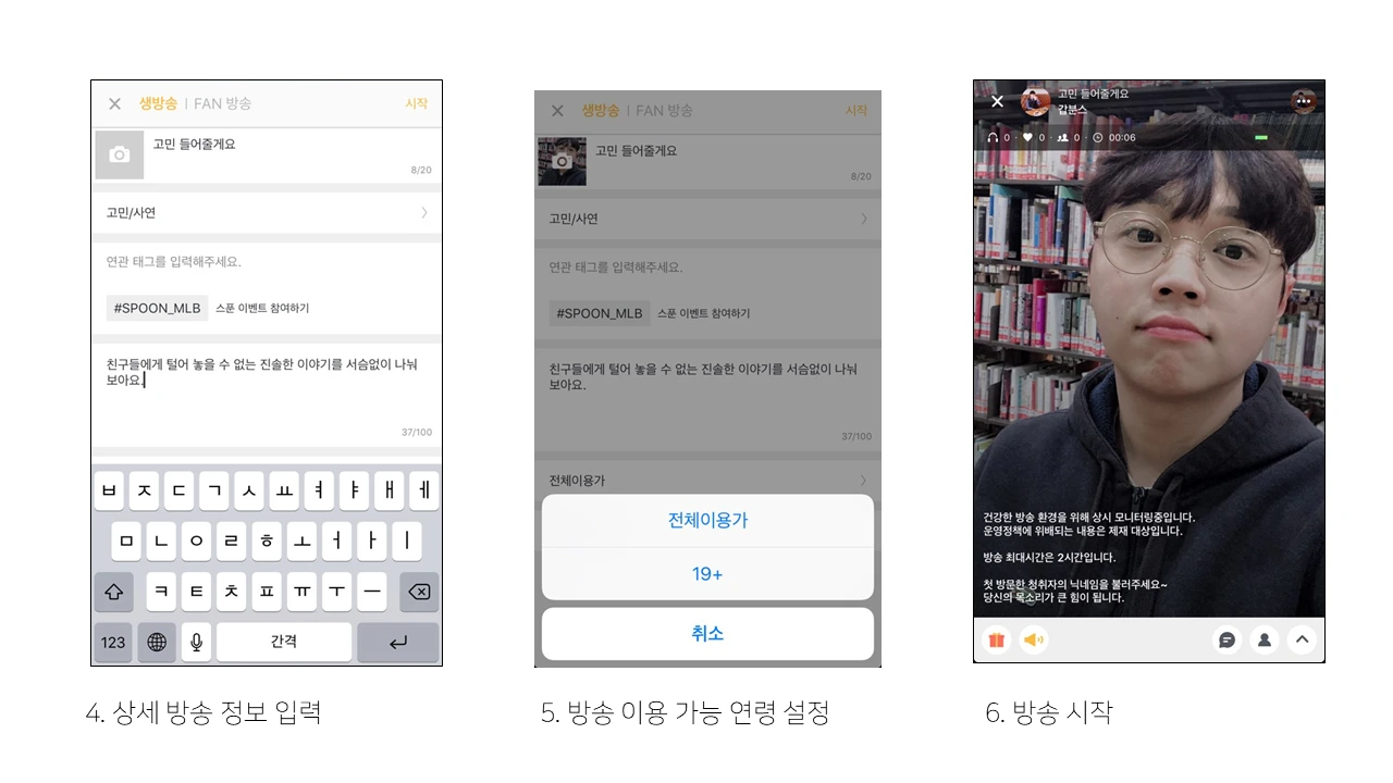 본격적으로 서비스 분석을 해보기 전에 스푼 라디오를 만든 최혁재 대표님에 대해서 이야기를 나누고 싶어요. 최 대표님은 자신의 직관을 바탕으로 서비스를 만들지 않은 것 같아 인상 깊었어요. 오히려, 사용자들의 데이터와 피드백 그리고 Z세대의 문화를 이해하고 있는 젊은 직원들을 중심으로 서비스를 만들었다고 해요. 실제로 스푼 라디오의 초창기 서비스는 이용자들이 음성으로 자신의 고민을 털어 넣고, 상담을 받는 형태였어요. 그런데 일부 사용자들이 라디오 형식의 방송 클립을 올렸고, 오히려 이 방식이 반응이 좋았던 거예요. 경영진들은 사용자들의 이용 형태와 피드백을 적극적으로 반영해서 서비스를 변형해 나갔다고 해요. 그래서 초기 1년 동안에만 총 54차례, 매주 한 번 꼴로 서비스를 업그레이드한 결과 지금의 스푼 라디오가 탄생할 수 있었어요. 더불어, 최 대표님은 한 인터뷰에서 이렇게 말하기도 했어요. "솔직히 저는 우리 방송들이 재미가 없어요. 처음에는 이용자들을 이해하고 그들과 어울려 보려고 애썼지만, 결국 불가능하다는 결론에 도달했어요. 이제는 인정했습니다. 이해하려 하지 말고 데이터로만 경영 판단을 하기로요." 아마도, 최 대표님은 의사 결정권자의 직관으로 서비스를 만들다 보면 큰 부작용이 나타날 수 있음을 잘 알고 있는 것 같아요. 가령, Z세대들을 주요 고객으로 생각하고 있는 SNS를 만들고 있는 팀에서 Z세대의 문화를 전혀 모르고 있는 의사 결정권자의 직관을 중심으로 프로젝트가 진행된다고 상상해보세요. 젊은 직원들은 Z세대들이 SNS를 사용하는 이유를 자기표현의 도구라고 주장하고 있는 반면 중년의 의사 결정권자가 자신의 경험을 바탕으로 Z세대들이 SNS를 사용하는 이유는 일상의 기록이라고 고집을 부리는 상황처럼, 젊은 직원들이 경험과 역량이 발휘될 수 없는 환경이라면 Z세대들에게 매력적인 SNS가 만들어질 수 있을까요? 물론, 의사 결정권자의 경험과 인사이트를 무시할 수는 없어요. 그러나! 적어도 만들고 있는 서비스의 주요 고객과 세대차이로 인해 그들의 문화를 이해하고 있지 못하는 상황이라면, 주요 고객의 문화를 잘 알고 있는 직원들의 피드백을 적극적으로 받을 필요가 있다고 생각해요. 서비스를 사용할 사람은 의사 결정권자가 아니라 타깃으로 설정한 주요 고객일 테니까요. 실제로 Z세대를 타깃으로 서비스를 만들고 있는 저희 팀 같은 경우도, 의사 결정권이 있는 팀장님이 서비스 철학과 주요 기능들을 결정하기보다는 젊은 팀원들이 주도적으로 기획할 수 있도록 말랑말랑한 작업 환경을 만들어주려고 노력하고 있어요. 덕분에 저는 신입 서비스 기획자인데도 불구하고 다양한 기능들을 직접 설계하고 나아가 팀원들을 설득해 세상에 서비스를 탄생시키는 과정을 몸소 경험하고 있어요. 더불어, 팀원들이 내부적으로 "정말 잘 될 수도 있겠다."라는 기대감을 가질 수 있는 주요 기능들이 조금씩 완성되고 있기도 하고요. 결론적으로, 스푼 라디오가 성공할 수 있었던 가장 큰 요인 중 하나는 최 대표님의 쿨한 경영 철학이라는 것이에요. “포기하면 빨라.”라는 말처럼 노력해도 이해할 수 없는 세대차이를 인정하고, 오히려 Z세대의 문화를 제대로 이해하고 있는 젊은 직원들이 능력을 적극적으로 발휘할 수 있는 환경을 만들어준 최 대표님의 노력이 지금의 스푼 라디오를 만들 수 있는 기반이 되었다고 생각해요. 자! 그럼, 지금부터 본격적으로 스푼 라디오라는 서비스를 통해 Z세대 사용자들은 무슨 경험을 하고 있고, 무엇이 매력적인지 살펴보도록 해요.