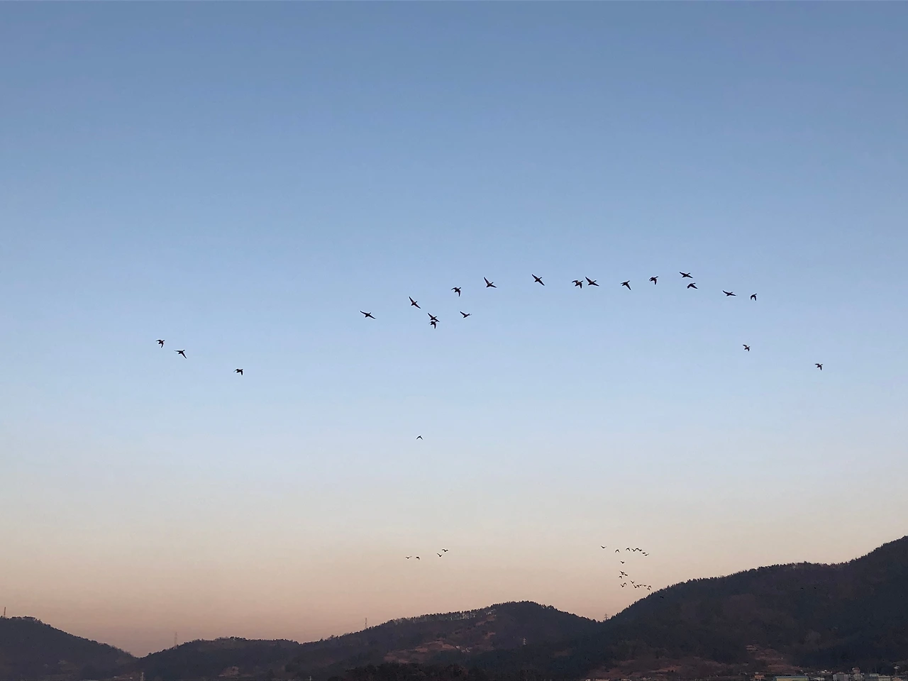 순천만에 들어가니 철새들이 우는 소리가 들렸다. 울림통이 크고, 시원한 소리를 내는 걸 보니 덩치가 큰 새 같았다. 소리가 나는 방향으로 고개를 들고 하늘을 보니 검은색 날개를 우아하게 펄럭거리는 흑두루미 떼가 있었다. 마치 빛이 들어오는 밝은 바닷속을 수영하는 물고기처럼 자유롭게 날아다녔다. 하늘, 바람, 노을, 안개, 흑두루미... 자연과 동물이 조화를 이루고 살아가는 공간은 아름다웠다. 그 공간의 아름다움을 카메라로 담고 있는 아저씨가 있었다. 대포처럼 큰 카메라와 튼튼한 삼각대를 보니 전문적으로 사진을 찍는 사람 같았다. 조용히 다가가 인사를 하니 반갑게 맞이해주셨다. 알고 보니 아저씨는 근처에 사는 동네 주민이었고 겨울만 되면 매일같이 철새들을 찍으러 온다고 했다. 그래서 본인은 잠을 잘 때도 흑두루미의 울음소리가 들린다는 농담을 하셨다. 동네 아저씨가 찍은 흑두루미는 전문 포토그래퍼가 찍은 사진만큼 생동감 넘쳤다. 검은색으로 물든 깃털에는 윤기가 흘렀고, 힘차게 펄럭거리는 날개는 살아 움직이는 것 같았다. 흑두루미 사진을 넘기다 보니 작고 귀여운 오리들도 있었다. 아저씨는 순천만 갈대밭에는 짱둥어 같은 먹이가 많을 뿐만 아니라 천적으로부터 숨을 수도 있어 다양한 종류의 철새들이 찾아온다고 했다. 나도 순천만의 아름다움을 담기 위해 필름 카메라를 꺼내 사진을 찍었다. 그렇게 아저씨와 함께 사진을 찍고 있는데 트럭 한 대가 들어왔다. 트럭에는 대포 카메라를 들고 있는 사람들이 많았다. 아저씨의 친구들이었다. 흑두루미를 찍기 위해 다른 곳으로 이동한다고 했다. 아저씨는 같이 가자고 권유해주셨지만 정중히 거절했다. 순천만을 조금 더 느긋하게 즐기고 싶었기 때문이다. 나는 아저씨에게 고맙다고 인사를 하고 갈대밭 안으로 들어갔다.